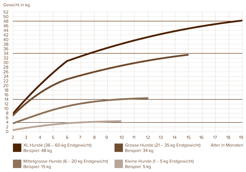 Gewichtskurven für alle Hundegrössen